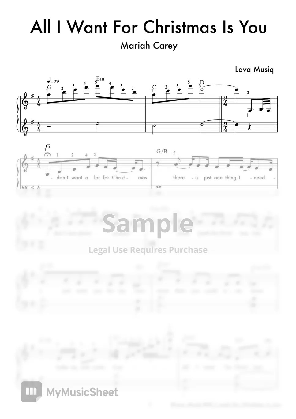 Mariah Carey All I Want For Christmas Is You (Easy Sheet) Partitura by Lava