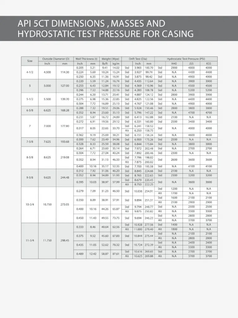 API 5ct s Pipe Drifts Casing Data Chart Plumbing Mechanical Engineering