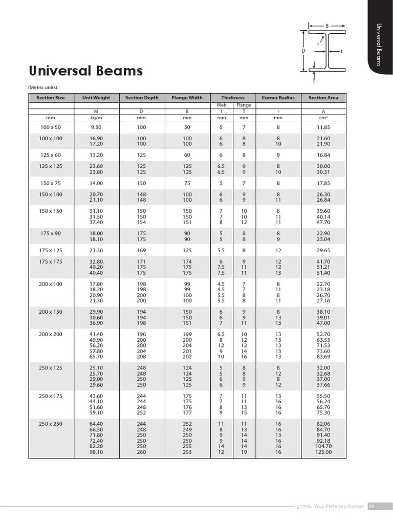 UNIVERSAL BEAM TABLE.pdf Structural Engineering Civil Engineering