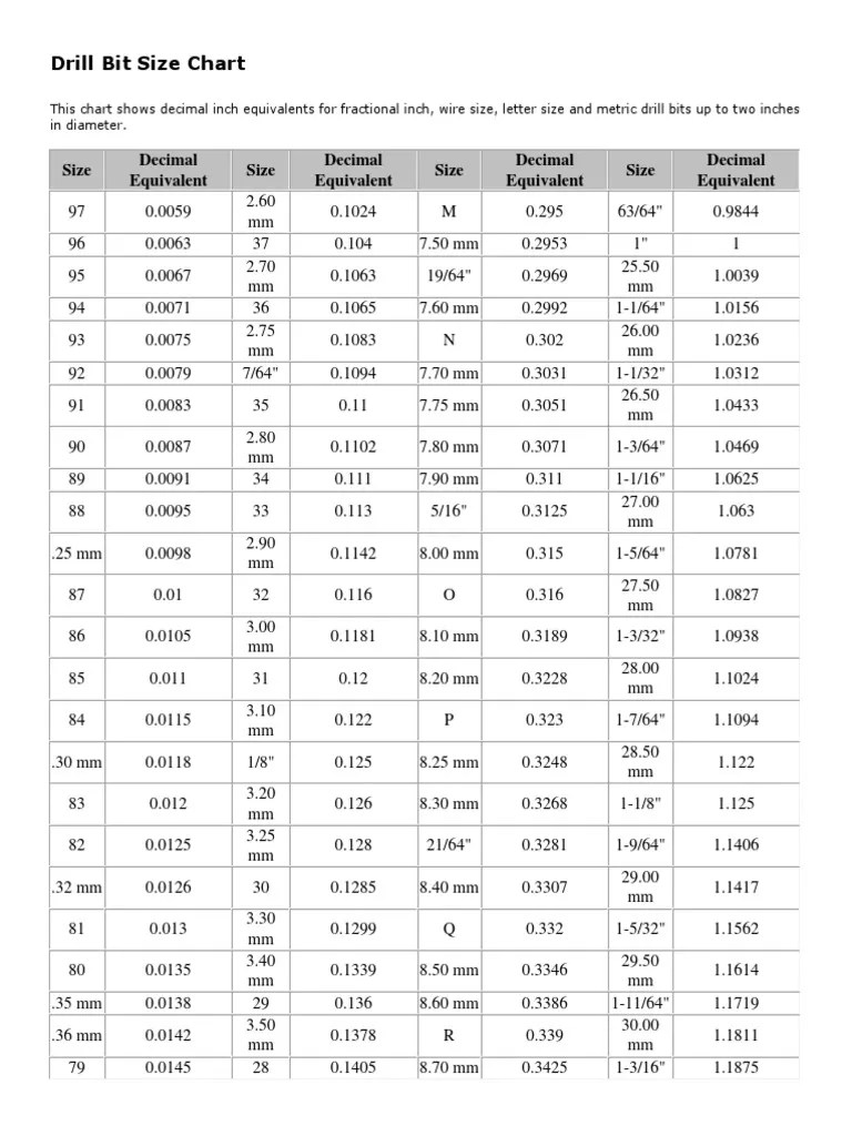 Printable Drill Bit Size Charts [100 Free + PDF]