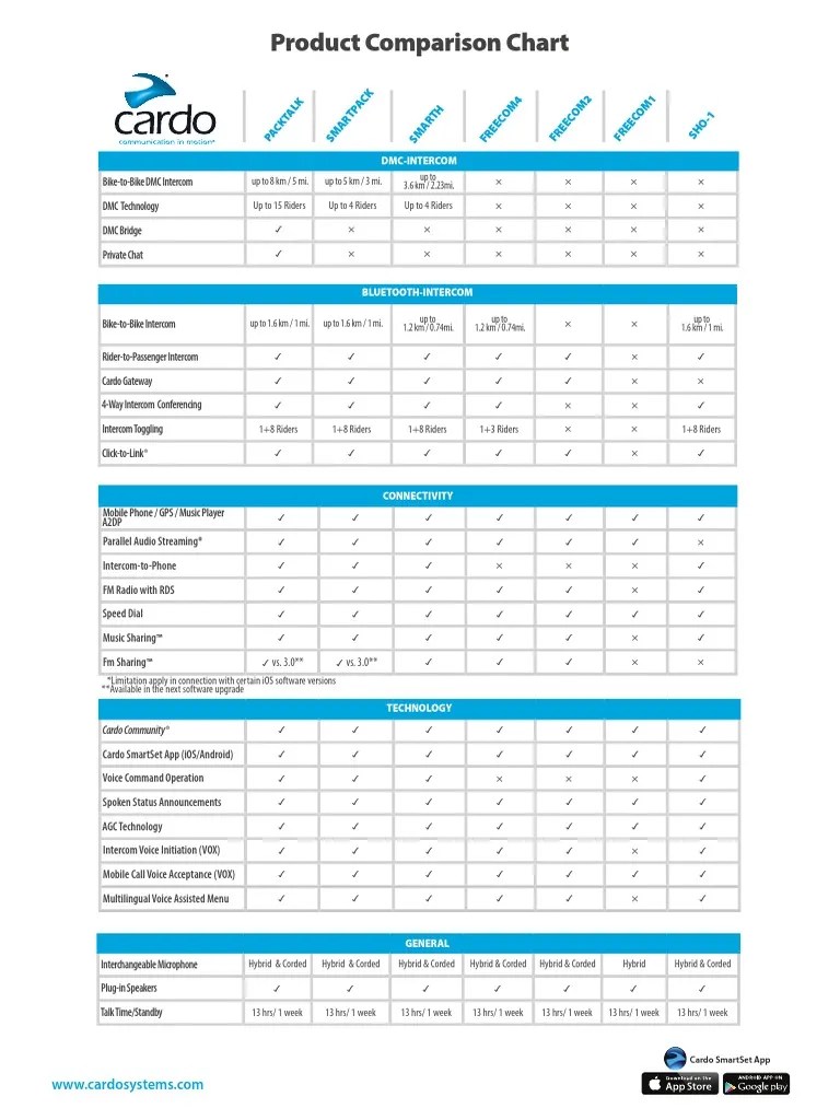 Cardo Comparison chart MOTODOMAINS