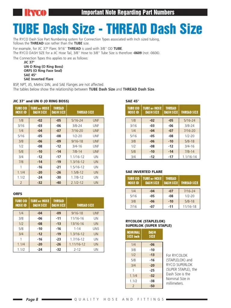 Ryco Tech Note Regarding Dash Sizing Part Numbers PDF PDF Pipe (Fluid Conveyance