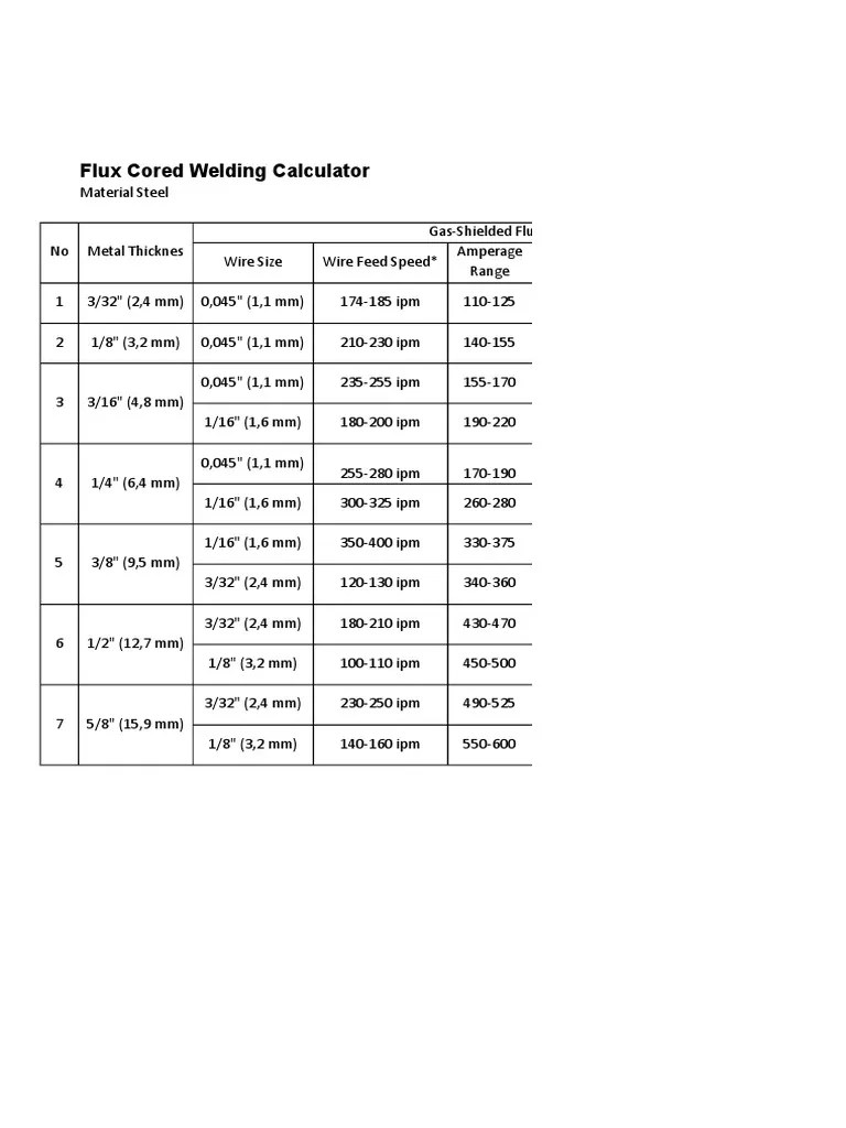 MIG FluxCored Welding Calculator PDF Electrical Components