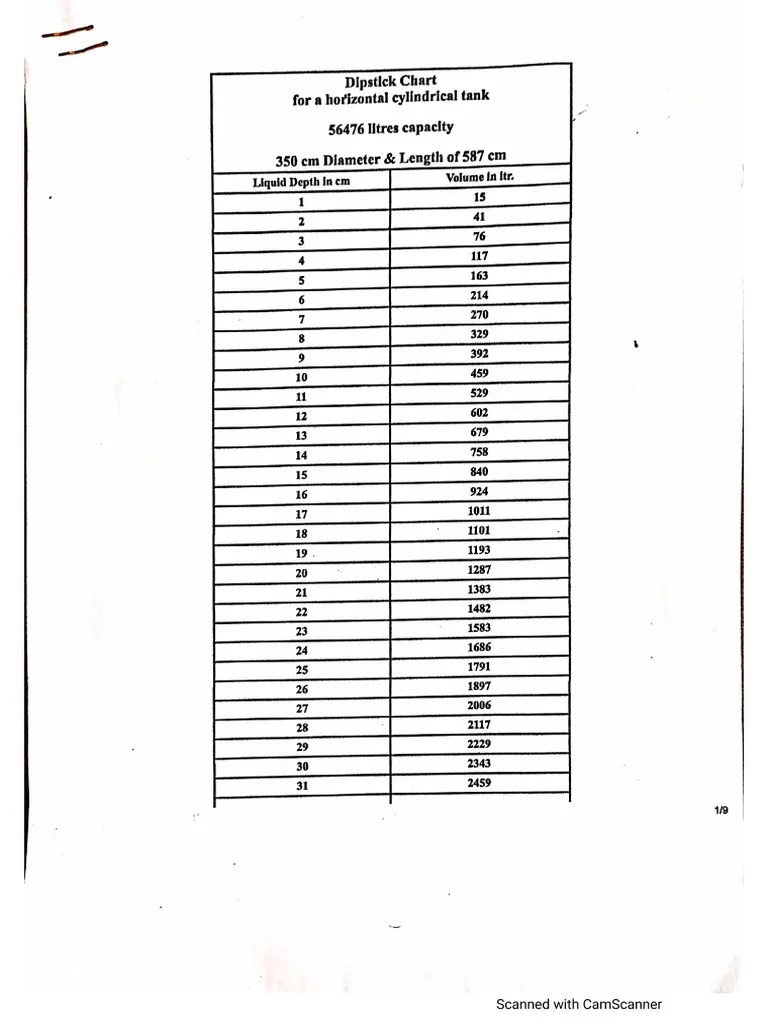 Hagra Dipstick Chart For A Horizontal Cylindrical Tank, 45 OFF