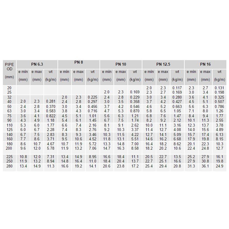Hdpe Pipe Dimensions Chart
