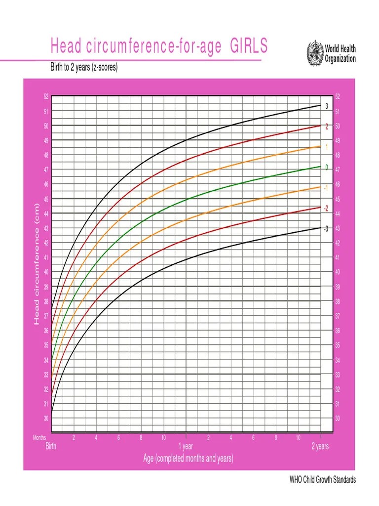 Girls Chart Head Circumference For Age. Birth To 2 Years (ZScores) PDF