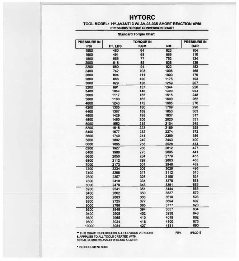 Hytorc Avanti 3 Torque Conversion Chart PDF