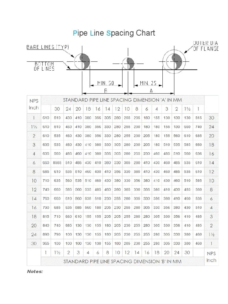 Pipe Line Spacing Chart Guidelines for Determining Minimum Distances Between Pipes Based on