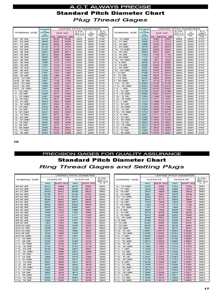 Standard Pitch Diameter Chart PDF Joining Cutting Tools