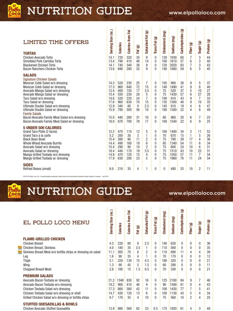 El Pollo Loco Nutrition Facts Pdf Besto Blog