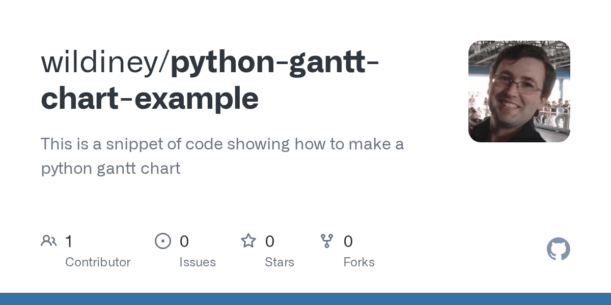 GitHub wildiney/pythonganttchartexample This is a snippet of code showing how to make a