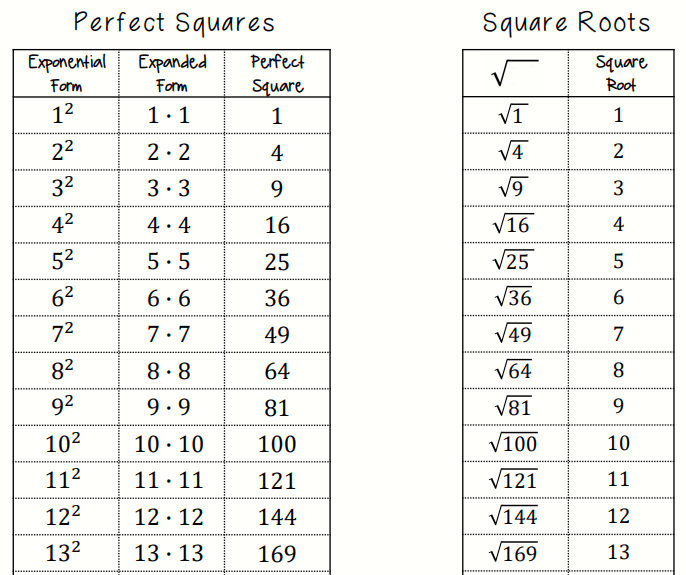 Simplifying Radicals Chart