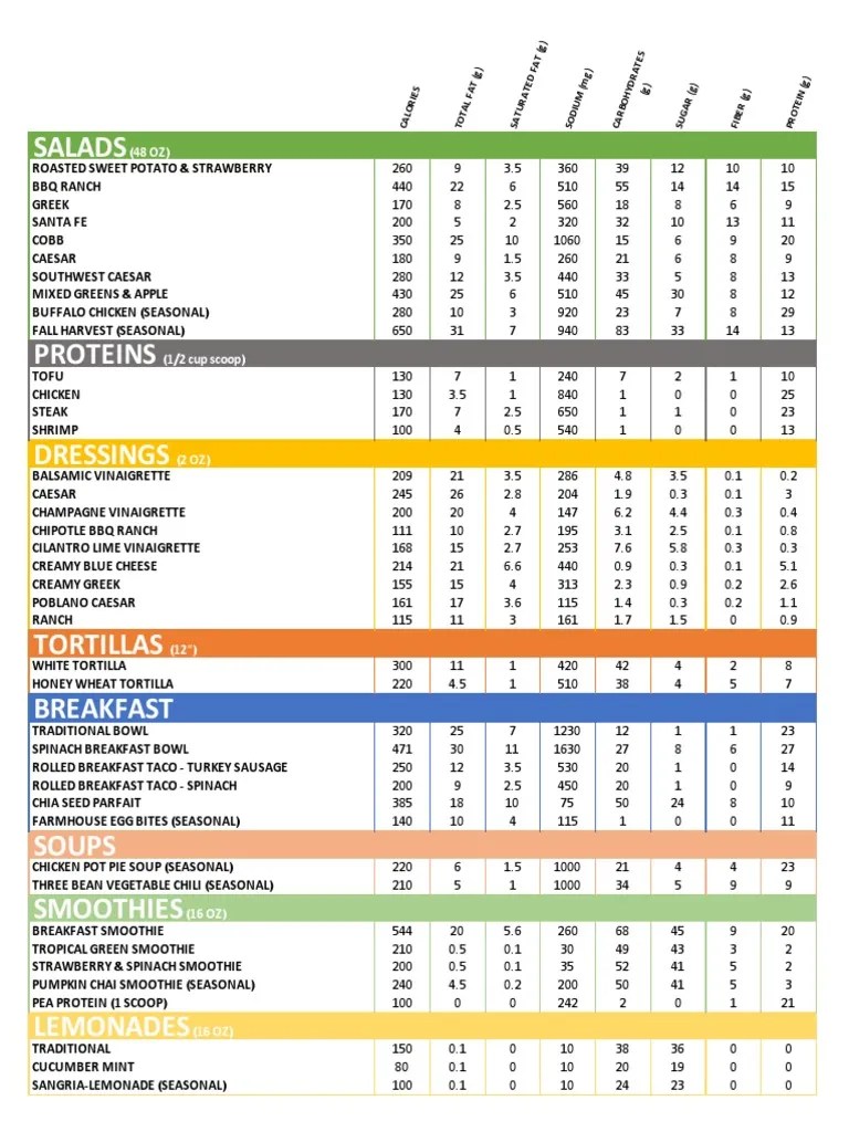 Salad Nutrition Chart - Nutrition information is based on our standard recipes and portion sizes. While care is taken to provide consistent portioning, because every item is made by hand, variations may occur. Calories, fat, protein, and carbohydrate values for for salad and other related foods. Reach and maintain your ideal weight with your personalized plan. The salad calorie chart lists all foods with calories and nutritional values. The favorite choice for the term salads is 1 cup of shredded or chopped mixed salad greens which has about 9 calories. Visit salata.com for the most accurate information. 2,000 calories a day is used for general nutrition advice, but cal. Check out our salad chart below for more nutritional information. Calorie and nutritional information for a variety of types and. Calories, fat, protein, and carbohydrate values for for salad and other related foods. Nutrition information is based on our standard recipes and portion sizes. Calorie and nutritional information for a variety of types and. The favorite choice for the term salads is 1 cup of shredded or chopped mixed salad greens which has about 9 calories. Detailed nutritional values such. Calorie and nutritional information for a variety of types and. Explore nutrition facts for all our fresh ingredients and build a salad that fits your lifestyle—healthy, delicious, and made your way! Detailed nutritional values such as carbohydrates, protein and fat are listed with the respective product in the. Nutrition information is based on our standard recipes and portion sizes. 2,000. Explore the good nutritional salad, featuring vibrant ingredients and wholesome flavors. Countless types of salad are available, each featuring unique toppings and dressings. Search for food calorie by snap! This article explores the calorie counts of various toppings, dressings, and popular. The salad calorie chart lists all foods with calories and nutritional values. 2,000 calories a day is used for general nutrition advice, but cal. Explore nutrition facts for all our fresh ingredients and build a salad that fits your lifestyle—healthy, delicious, and made your way! Search for food calorie by snap! How many calories should you consume? Find out the calorie counts of various salad ingredients in a detailed chart to enhance. The salad calorie chart lists all foods with calories and nutritional values. Explore the good nutritional salad, featuring vibrant ingredients and wholesome flavors. Search for food calorie by snap! Countless types of salad are available, each featuring unique toppings and dressings. Explore nutrition facts for all our fresh ingredients and build a salad that fits your lifestyle—healthy, delicious, and made. Nutritional information provided by usda. Find out the calorie counts of various salad ingredients in a detailed chart to enhance your diet plan. Calories, fat, protein, and carbohydrate values for for salad and other related foods. Explore the good nutritional salad, featuring vibrant ingredients and wholesome flavors. Countless types of salad are available, each featuring unique toppings and dressings. The salad calorie chart lists all foods with calories and nutritional values. Check out our salad chart below for more nutritional information. The favorite choice for the term salads is 1 cup of shredded or chopped mixed salad greens which has about 9 calories. This article explores the calorie counts of various toppings, dressings, and popular. Calories, fat, protein, and. The favorite choice for the term salads is 1 cup of shredded or chopped mixed salad greens which has about 9 calories. Check out our salad chart below for more nutritional information. Explore the good nutritional salad, featuring vibrant ingredients and wholesome flavors. Detailed nutritional values such as carbohydrates, protein and fat are listed with the respective product in the.. Explore the good nutritional salad, featuring vibrant ingredients and wholesome flavors. Check out our salad chart below for more nutritional information. Search for food calorie by snap! How many calories should you consume? Visit salata.com for the most accurate information. Detailed nutritional values such as carbohydrates, protein and fat are listed with the respective product in the. Check out our salad chart below for more nutritional information. Calories, fat, protein, and carbohydrate values for for salad and other related foods. Calorie and nutritional information for a variety of types and. Search for food calorie by snap!Want to get the most nutrients out of your salad? Choose your greens wisely! Click to view this
