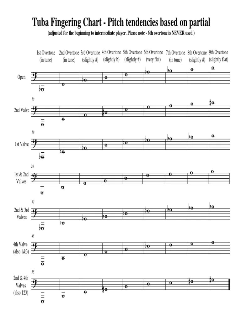 Tuba Fingering Chart Harmonic Pitch Tendencies PDF
