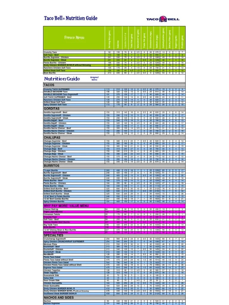 Taco Bell Breakfast Nutrition Facts Chart Besto Blog