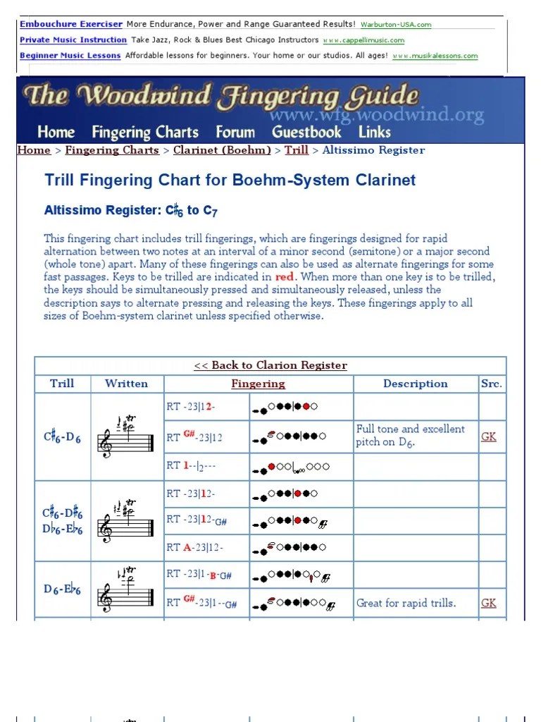 Altissimo Register Trill Fingering Chart For BoehmSystem The Woodwind