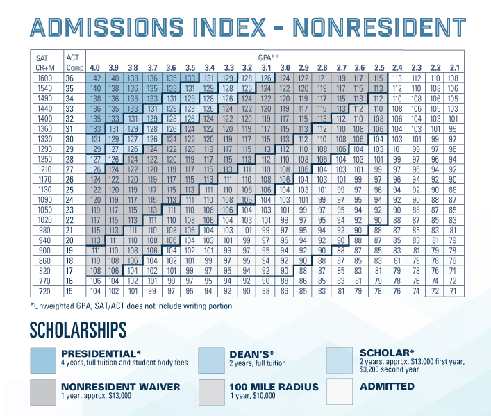 NonResident Scholarship/Admission Index SUU chart Scholarships, How to get scholarships
