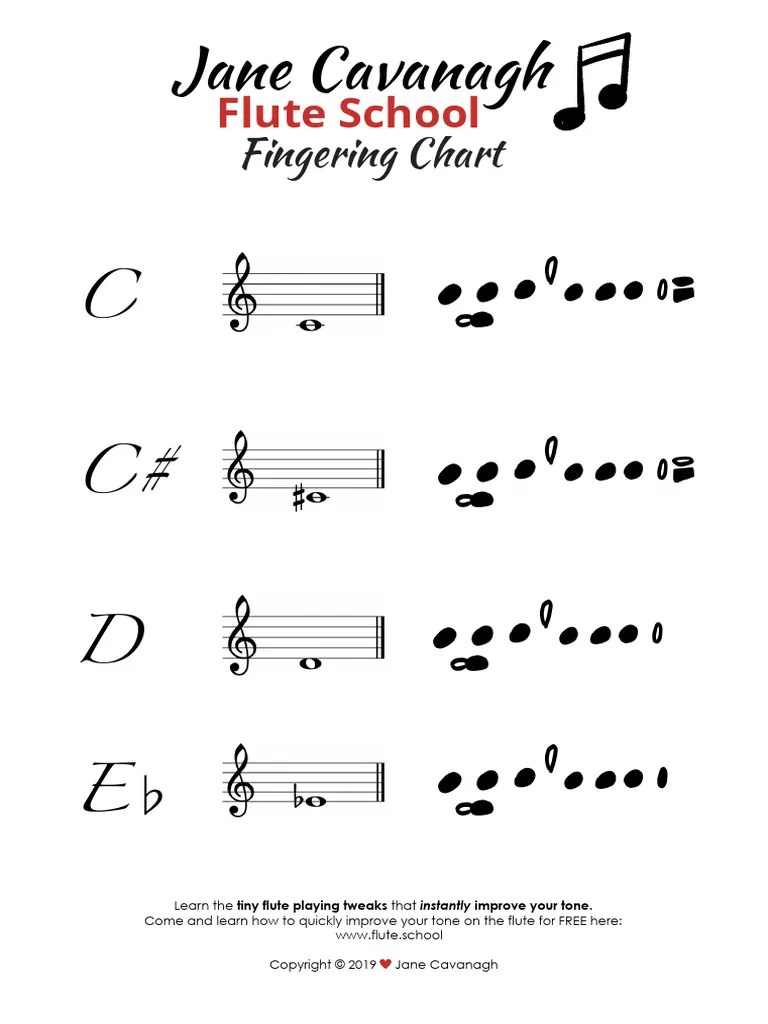 Flute Fingering Chord Chart Beginner Student Practice Teaching Aids Flute Fingering Chart
