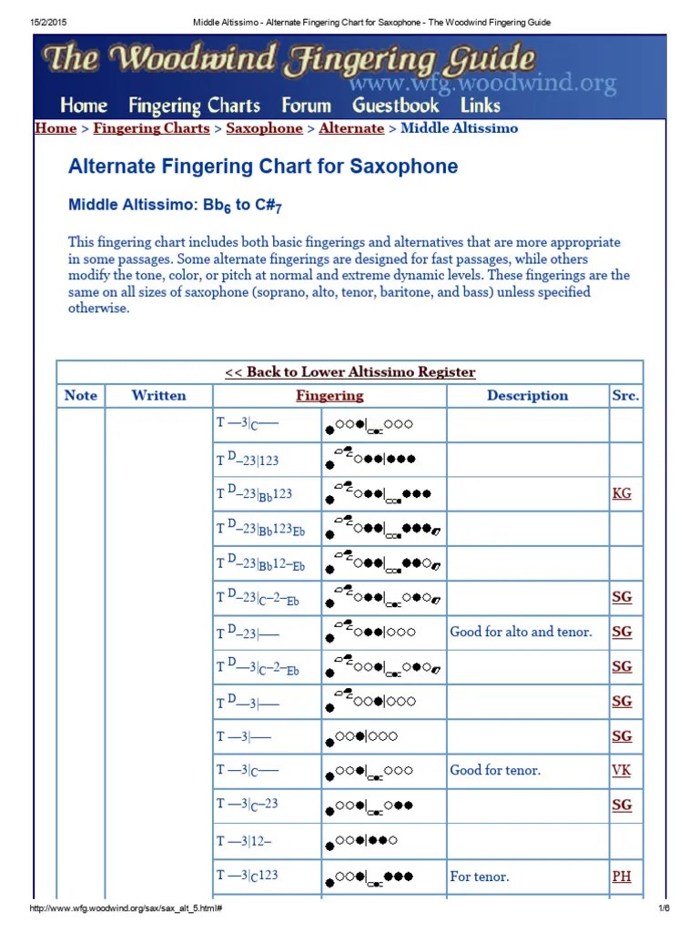 Middle Altissimo Alternate Fingering Chart For Saxophone The Woodwind Fingering Guide2 PDF