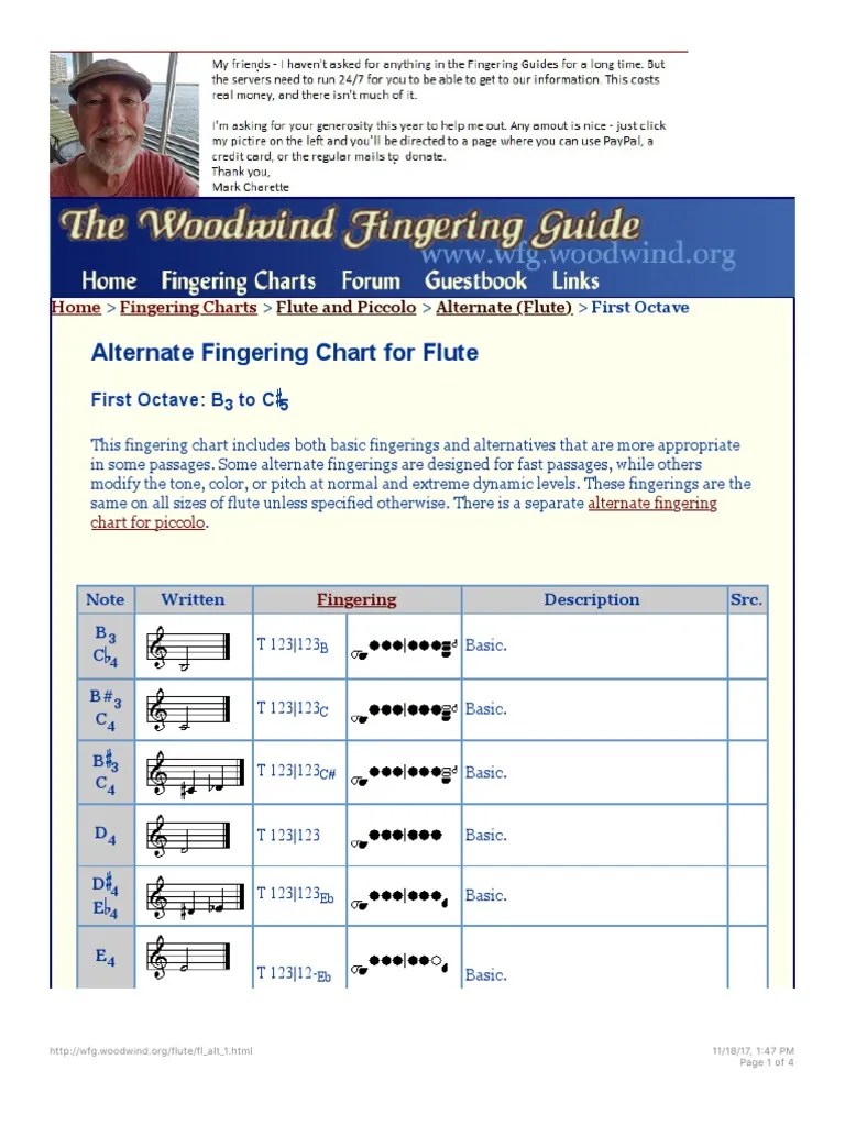 First Octave Alternate Fingering Chart For Flute The Woodwind Fingering Guid PDF Flute