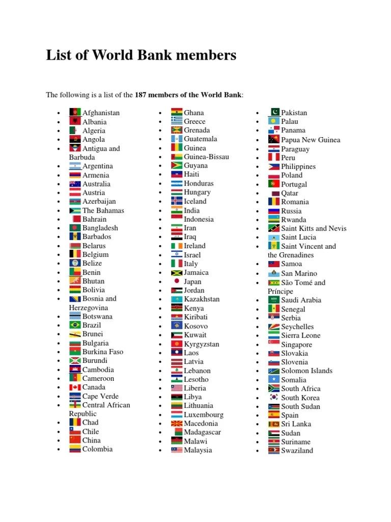 List of World Bank Members PDF International Economic Organizations World Bank Group